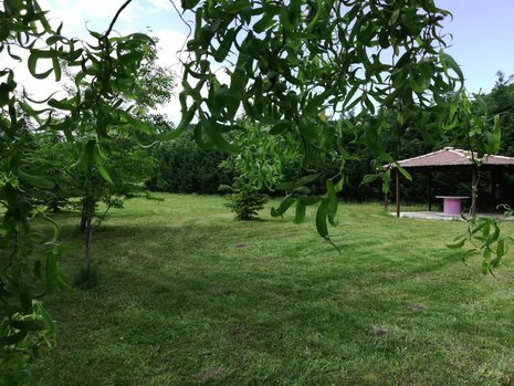 En Exterieur: Grand parc d'un hectare et demi boisé et agrementé d'un kiosque. Espace privatif avec salon de jardin, barbecue, parking.